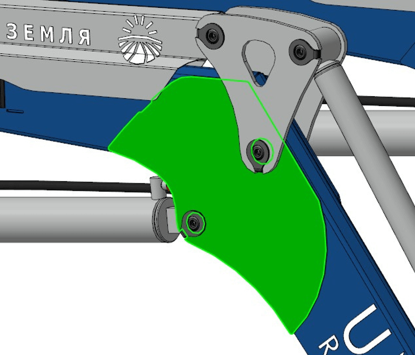 Накладка увеличена в два раза, что позволило укрепить соединения ног стрелы и уменьшить риск повреждений при интенсивной работе с тяжелыми грузами. -