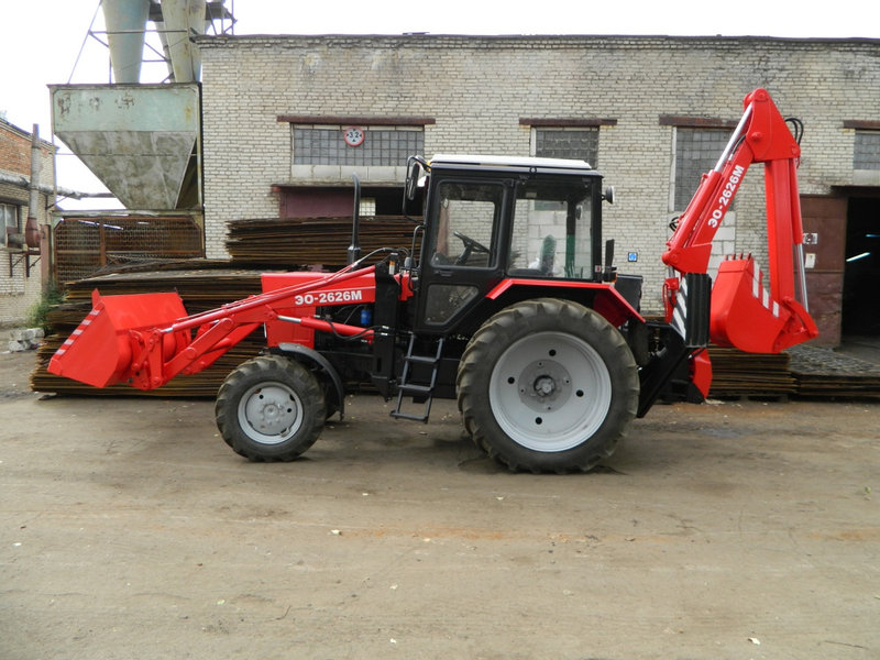 Экскаваторное оборудование ЭО2626М предназначено для установки натрактор МТЗ тягового класса 1,4 (МТЗ 82.1; МТЗ 82.1-23/12-23/32; МТЗ920; МТЗ 920.2, МТЗ 892 и т.д.). При установке экскаваторногооборудования на базовый трактор, так же необходимо установить переднеенавесное оборудование (бульдозерный отвал или погрузчик). Этооборудование будет служить противовесом экскаваторной навеске и даствозможность вывешивать трактор при проведении экскаваторных работ.