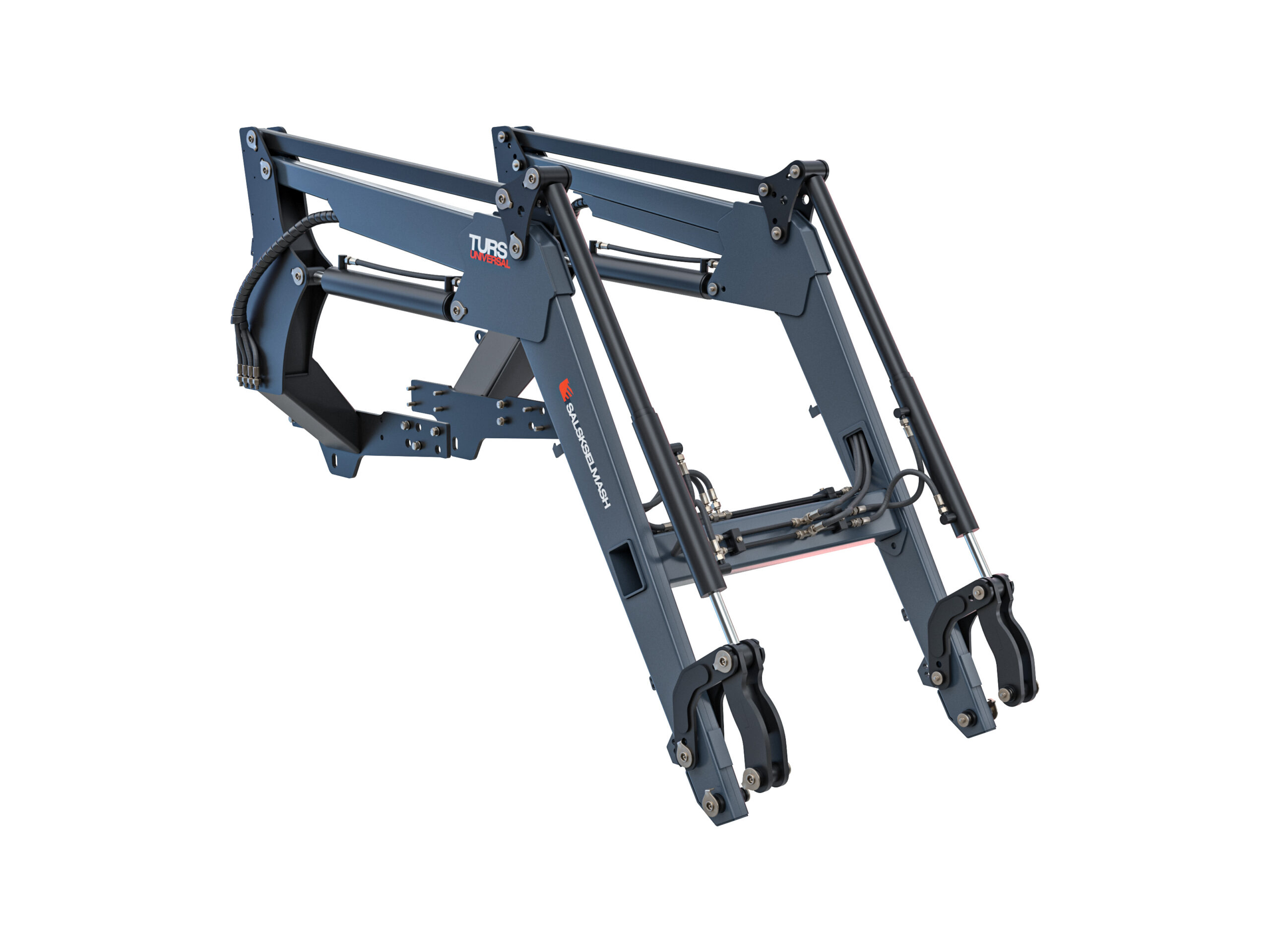 В стандартной комплектации TURS Universal оснащён усиленными гидроцилиндрами подъёма 80×40 и использует ковш объёмом 0,8 м³ (КУН-1000У-2). Эта модель является отличным выбором для пользователей, которым не требуется дополнительные рабочие органы, но она также предоставляет возможность дооснащения. При установке переходника (КУН-1000У 9/34) погрузчик может использовать все рабочие органы, совместимые с погрузчиками серии TURS. Это значительно расширяет функциональные возможности и позволяет адаптировать технику под различные задачи.
