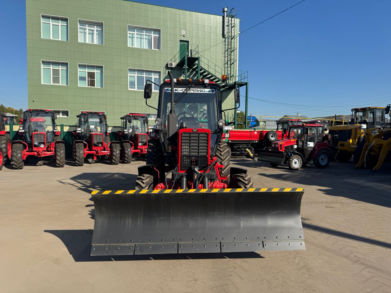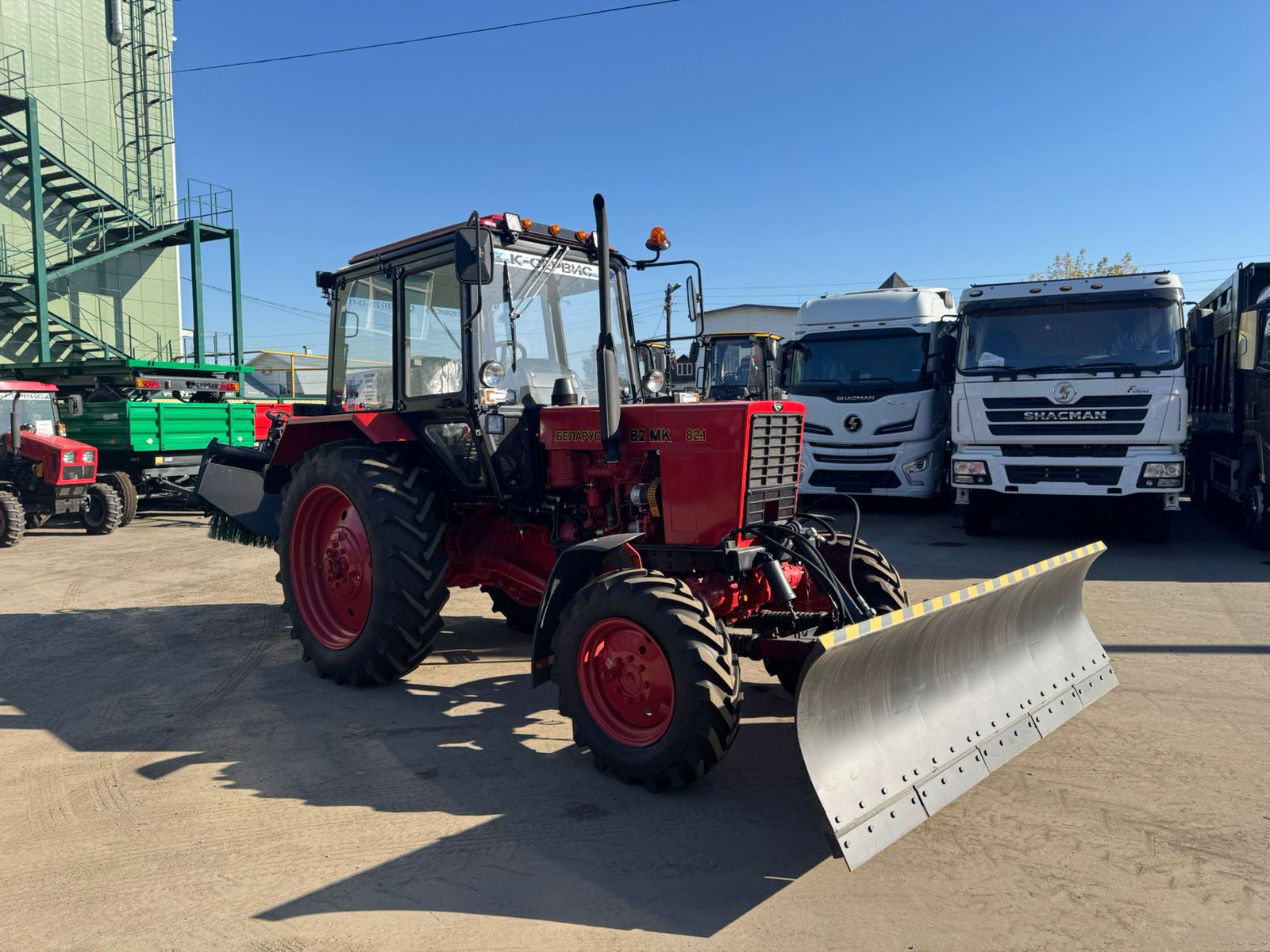 Машина уборочная «БЕЛАРУС» 82МК предназначена для очистки проезжей части дворов, улиц, площадей, дорог и тротуаров от свежевыпавшего снега и мусора, а также для планировки неслежавшегося (рыхлого) насыпного грунта и засыпки им траншей и ям.