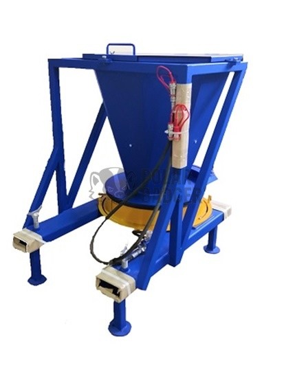 Данное оборудование устанавливается на вилы погрузчика, фиксируется при помощи винтовых прижимов. Настройка радиуса разбрасывания устанавливается оператором вручную перед началом работы.